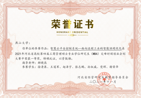 经过3个多小时的激烈角逐,我校《智慧云平台控制系统——面向流程工业的智能协同优化》项目荣获一等奖,《鹦鹉螺——沉浸式水下探索》项目荣获二等奖,郝晓辰教授获得最佳指导教师奖。同时,我校提交的《风享科技——未来风电行业》荣获省二等奖,《莱特智液——中国高端移动》、《遇文创——景区文创产品创意设计销售有限公司》、《基于BIM的恒温恒氧恒湿系统》获得省三等奖。