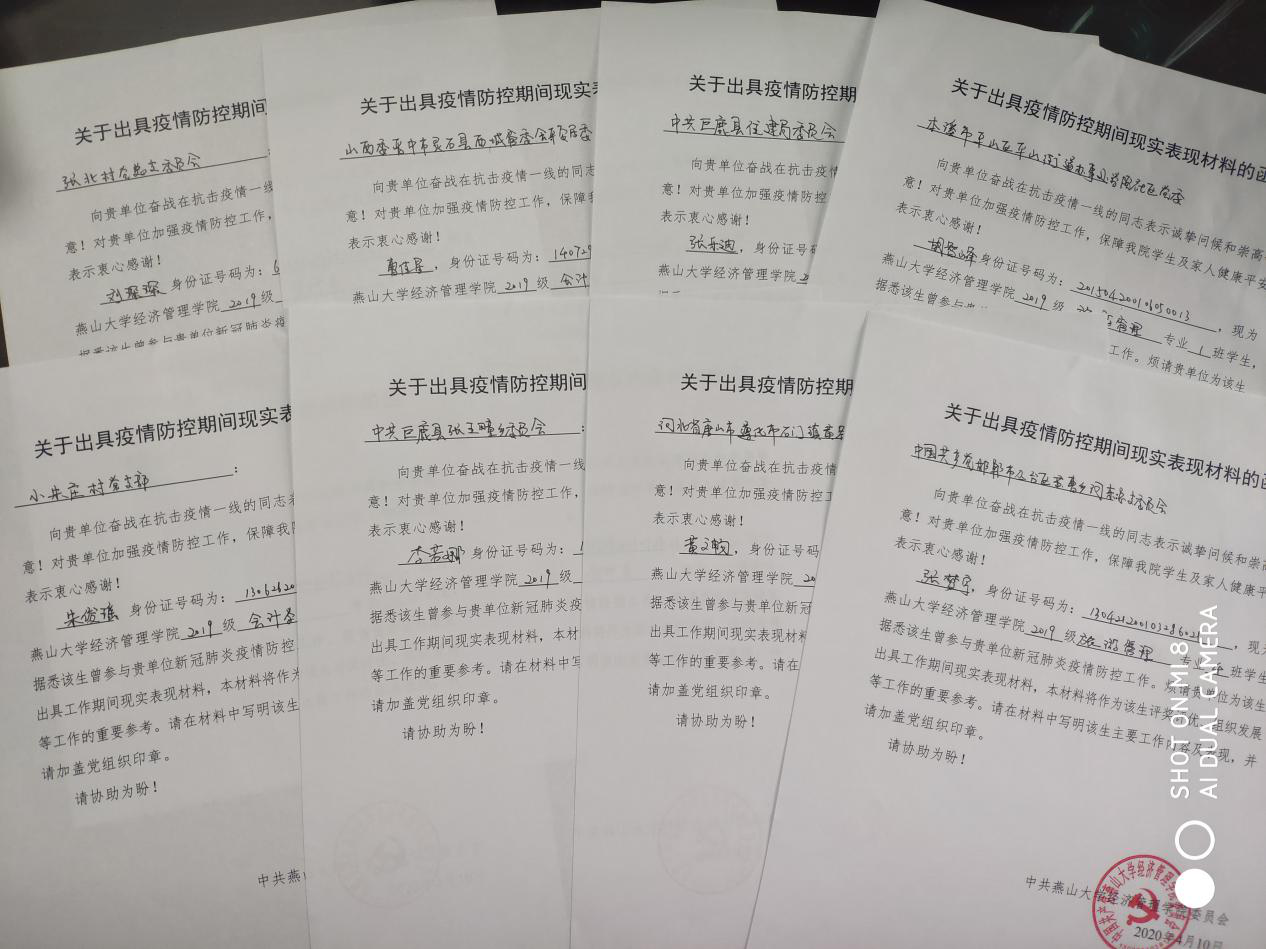 党委为了更好地了解和掌握学生志愿服务期间思想和现实的情况,以作为未来评奖评优、组织发展等工作的重要参考,近期先后向91个学生参与疫情防控的志愿服务地党组织发出了《关于出具疫情防控期间现实表现材料的函》,得到了来自多个省市区基层党组织的积极回应,纷纷表达了对学生志愿服务期间表现的认可和肯定,对学校、永利app