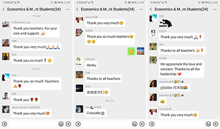 常务副院长张文莉、副院长姜炼、副处级辅导员冯清华、学生科科长葛玮,共同看望慰问了目前在校的22名经济、管理相关学科专业本硕博留学生。
