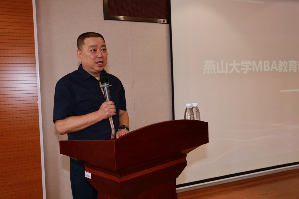 最后,燕山大学党委副书记谢延安讲话,对2019级新生表示了热烈欢迎和衷心祝贺,并以“知行合一,做实干家”为题介绍燕山大学的悠久历史、深厚积淀和优秀传承,从国家级师资人才队伍、国家级科研平台、国家级强势特色学科、国家级科研大奖、顶级国际专业认证等五方面介绍燕山大学“特色鲜明,国内一流,国际知名的研究型大学“建设举措与成果。谢延安副书记高度评价燕山大学MBA教育中心取得的成绩,勉励新同学及广大校友胸怀经世济民的大志,笃定知行合一的理念,不忘工商报国的初心,做实干家。