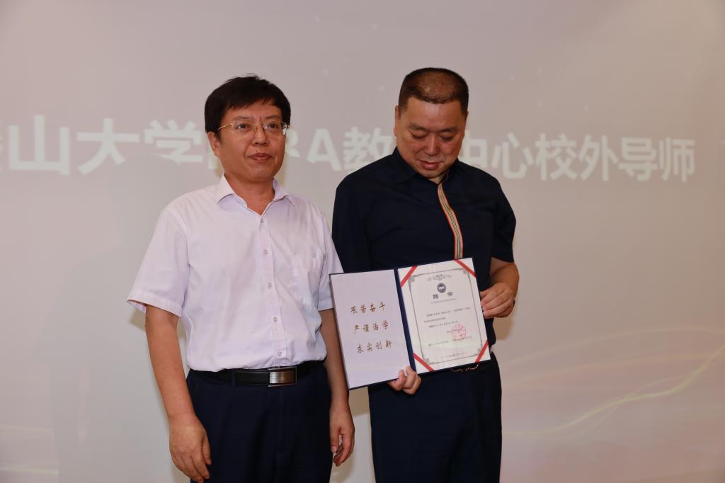 研究生院院长官英平教授为燕山大学MBA校外导师、河北衡水老白干酒业股份有限公司副总经理、河北衡水老白干营销有限公司总经理赵旭东先生颁发聘书。