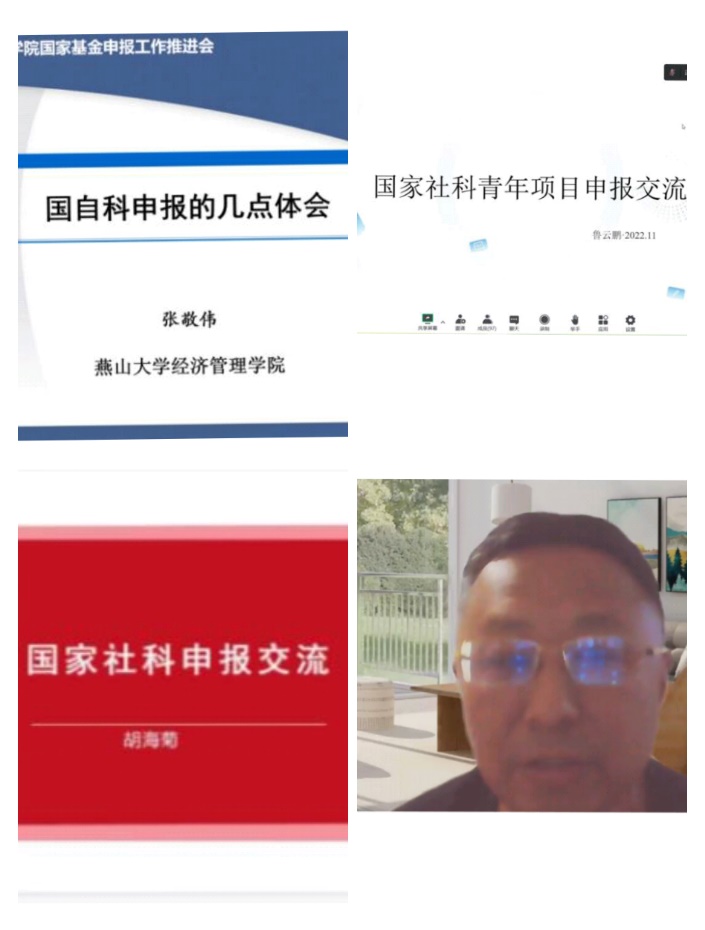 会议邀请获得2022年度国家基金项目的负责人进行了申报经验分享。张敬伟教授、胡海菊副教授、鲁云鹏博士、张亚明教授先后分享了国家基金的申报经验及心得体会,鼓励老师在申报过程中不仅要掌握技巧还要保持好的心态,做到持之以恒。