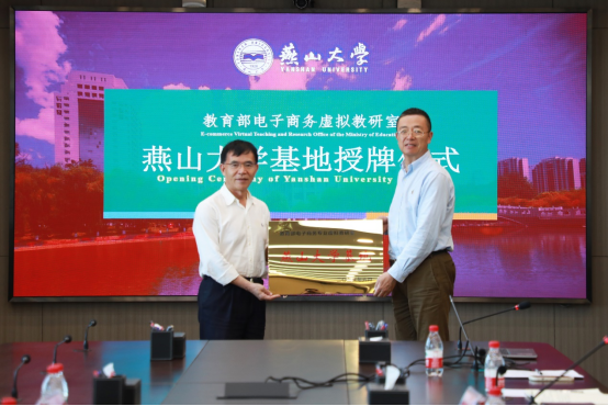 李琪教授代表教育部电子商务专业虚拟教研室向燕山大学授牌,我校也正式成为了全国第10个教育部电子商务专业虚拟教研室基地。