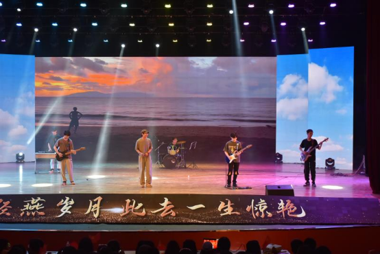 老师和同学们同台表演,李宁、张梦、邵将三位毕业班辅导员老师和学生一起为大家带来合唱《重返十七岁》;永利app