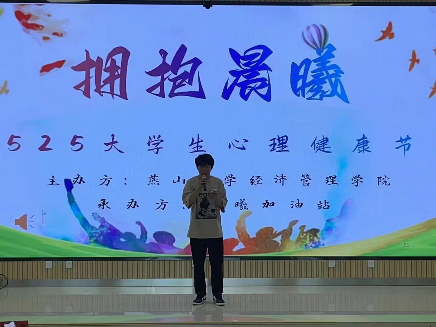 和各位老师对525大学生心理健康节系列活动的大力支持,感谢每一位工作人员的辛苦努力,感谢各班同学们的积极参与。在大家的共同努力下,关怀大学生心理健康的工作得到进一步发展,晨曦加油站一直都走在传递爱与正能量的路上。希望同学们都能够呵护身心健康、热爱美好生活,活出燕大学子的风采!