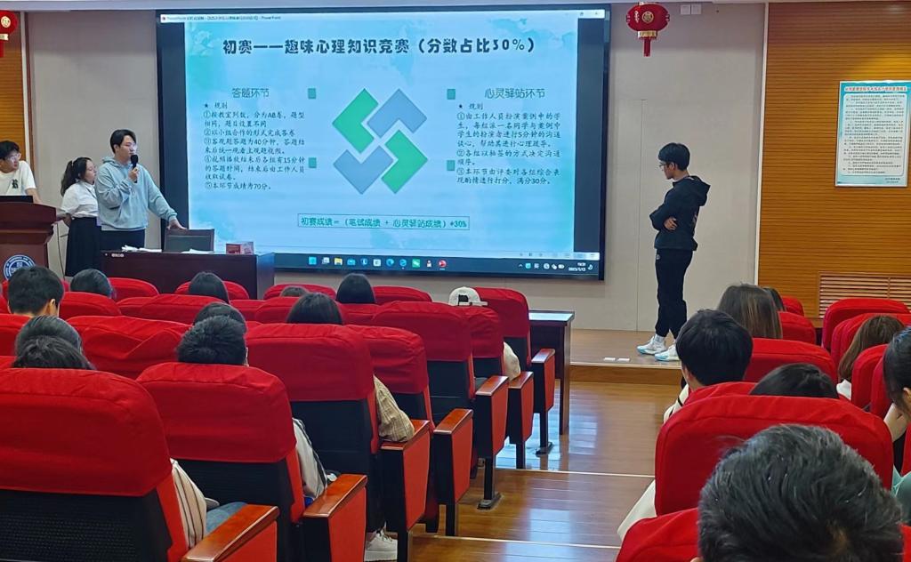 2022级每个班级派出一支五人小组参赛。初赛分为笔试答题环节和心灵驿站趣味环节,笔试答题又分为客观知识题与视频分析题。本次竞赛使大家充分了解了正确的心理知识,学习了怎样有效地与他人进行交流,对心理健康教育有了更为生动、深刻的理解和感受。