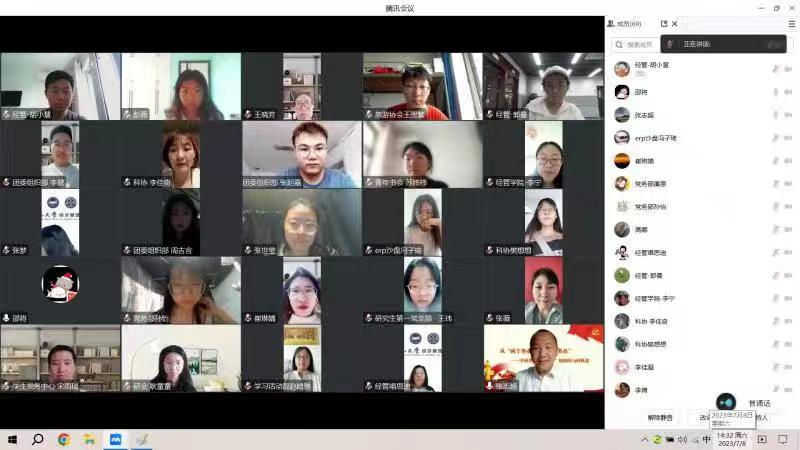 全体辅导员、学生党支部委员、学生组织和社团骨干,以《从“两个务必”到“三个务必”——中国共产党“赶考”精神的与时俱进》为题,在线讲授主题教育专题党课。