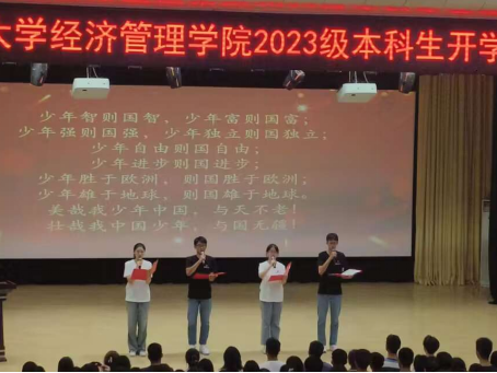 内涵式发展,不断书写新时代教书育人的精彩篇章。她希望,在新的人生起点上,全体2023级新同学要牢记燕大校训、抢抓时代机遇、找准人生坐标、加强自身修养、保持学习热情、培育探索精神,重德敬业、守正创新,努力成为有理想、敢担当、能吃苦、肯奋斗的新时代好青年,努力成为有经济头脑、有管理能力、有合作精神、有商业道德的务实型、复合型和应用型管理人才。