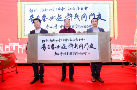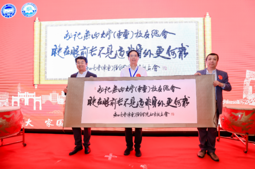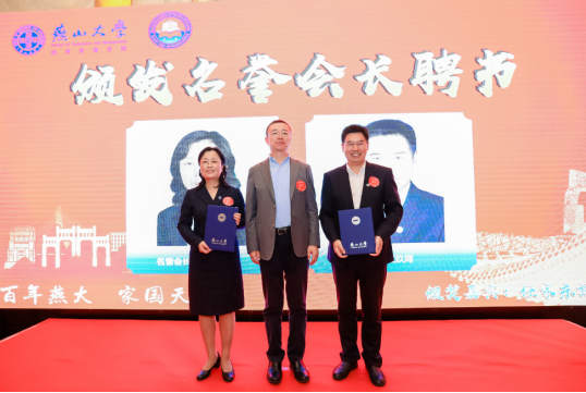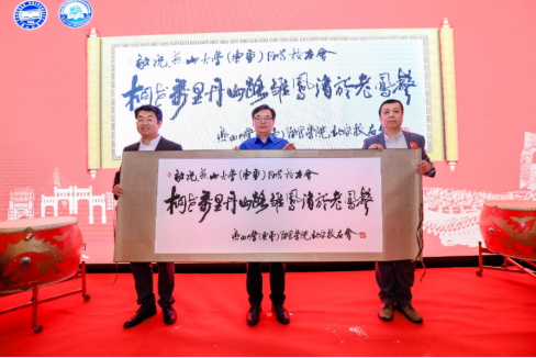 在校友赠礼环节,赵继超携孙锴共同赠出由中国书法协会副会长、著名书法家张崇德少将亲题的三幅字画。张向前、赵恒、张振华分别代表燕大校友总会、燕大北京校友会、燕大永利app