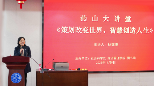 11月9日下午,“燕山大讲堂”活动在经管楼A218举行,本次活动邀请到中国策划行业领军人物、规划专家,中国智慧工程研究会策划专业委员会副主席,中国智慧工程研究会优秀和杰出人才发展委员会副主席,国家智库专家杨健鹰教授为我校师生进行专题讲座。活动由永利皇宫app