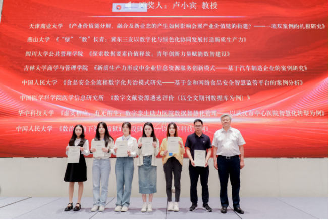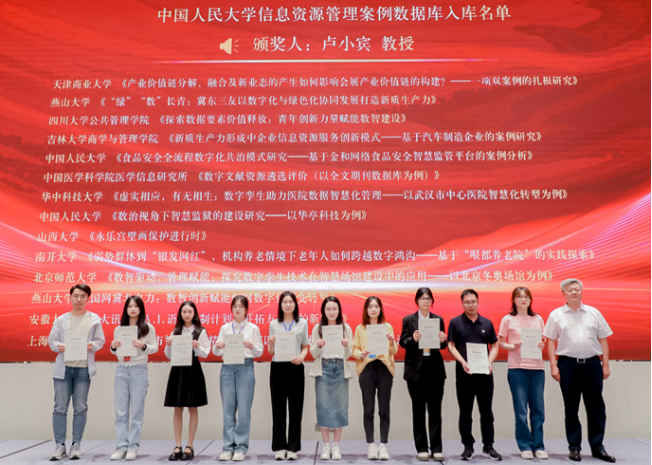 学术委员会主任卢小宾教授对入选首届全国信息资源管理案例发展论坛的8篇“优秀案例”作者进行了颁奖。刘海鸥教授撰写的《“绿”“数”长青:冀东三友以数字化与绿色化协同发展打造新质生产力》经过专家评委层层筛选被评为“优秀案例”;《国网冀北电力:数智创新赋能配网数字化蝶变转型》、《“绿”“数”长青:冀东三友以数字化与绿色化协同发展打造新质生产力》两篇案例入选中国人民大学信息资源管理案例数据库。