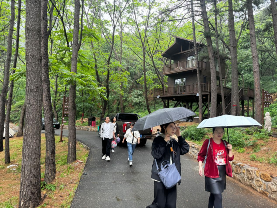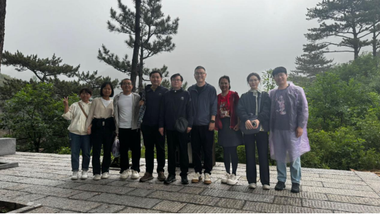 “背牛顶”景区内,林木葱郁、风景优美;牛顶孤峰,四面陡峭壁立,高入云际,静若仙境。尽管天公不作美,但绵绵的阴雨依然无法阻挡会员们登山的热情。有的老师沿着山谷而上,在树荫下边走边聊,聆听到山赖间阵阵清脆的鸟鸣,畅谈彼此对工作与生活的美好向往;有的老师一鼓作气爬到山顶,在最高点留下自己的足迹,享受着大自然赋予的美好风光。