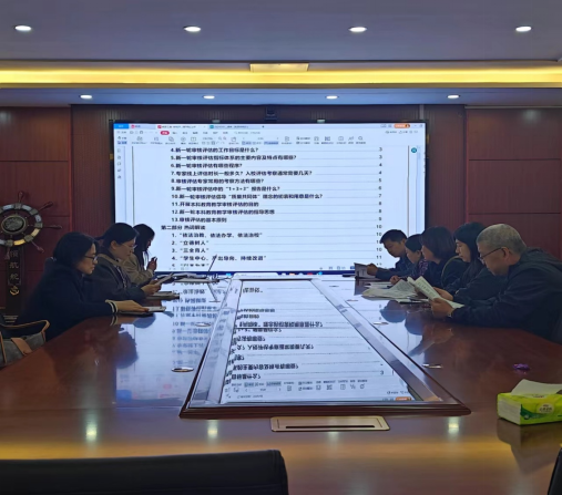 本科教育教学审核评估知识手册(教师版)》,并详细阐述了实验中心迎评工作的具体安排和注意事项。她提到,实验室迎评工作主要包括实验室环境整治、设备检查与维护、教学资料整理、实验课程课堂质量、过程考核及成绩评定等多个方面。同时,还强调了实验室安全管理和文档归档工作的重要性,要求各实验室负责人立即行动起来,对实验室进行彻底的安全隐患排查,确保实验环境的安全有序。