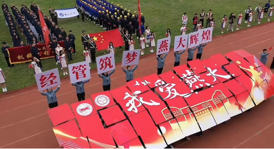 教师方阵成为全校璀璨亮点,统一的院服下,是心跳与步伐的同频默契;整齐的队列里,是精神抖擞、积极向上的生动写照;每一次踏步,都是团结一致的力量宣言,手举标语牌拼成“经管筑梦,燕大辉煌”的口号。看台上的观众们也整齐划一的喊出永利app