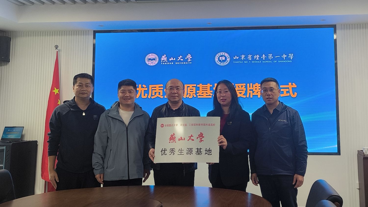 代表燕山大学与烟台市两所知名高中——山东省牟平第一中学、山东省烟台第一中学,签署了优秀生源基地合作协议并授牌,标志着双方将在人才培养、资源共享等方面开展深入合作,共同为培养高素质人才贡献力量。