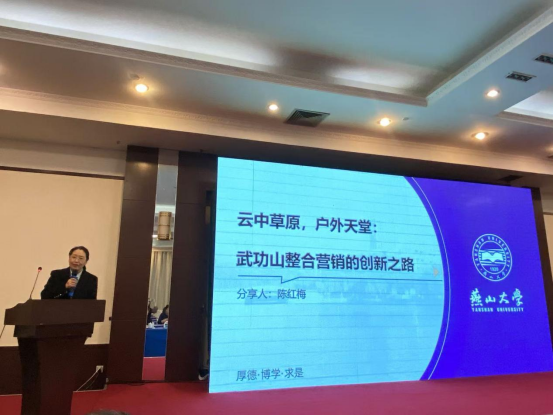 随后,会议开展了案例点评与交流活动,我校陈红梅教教授代表燕山大学受邀上台分享《云中草原,户外天堂:武功山整合营销的创新之路》案例,与各位专家进行了深入探讨与交流。
