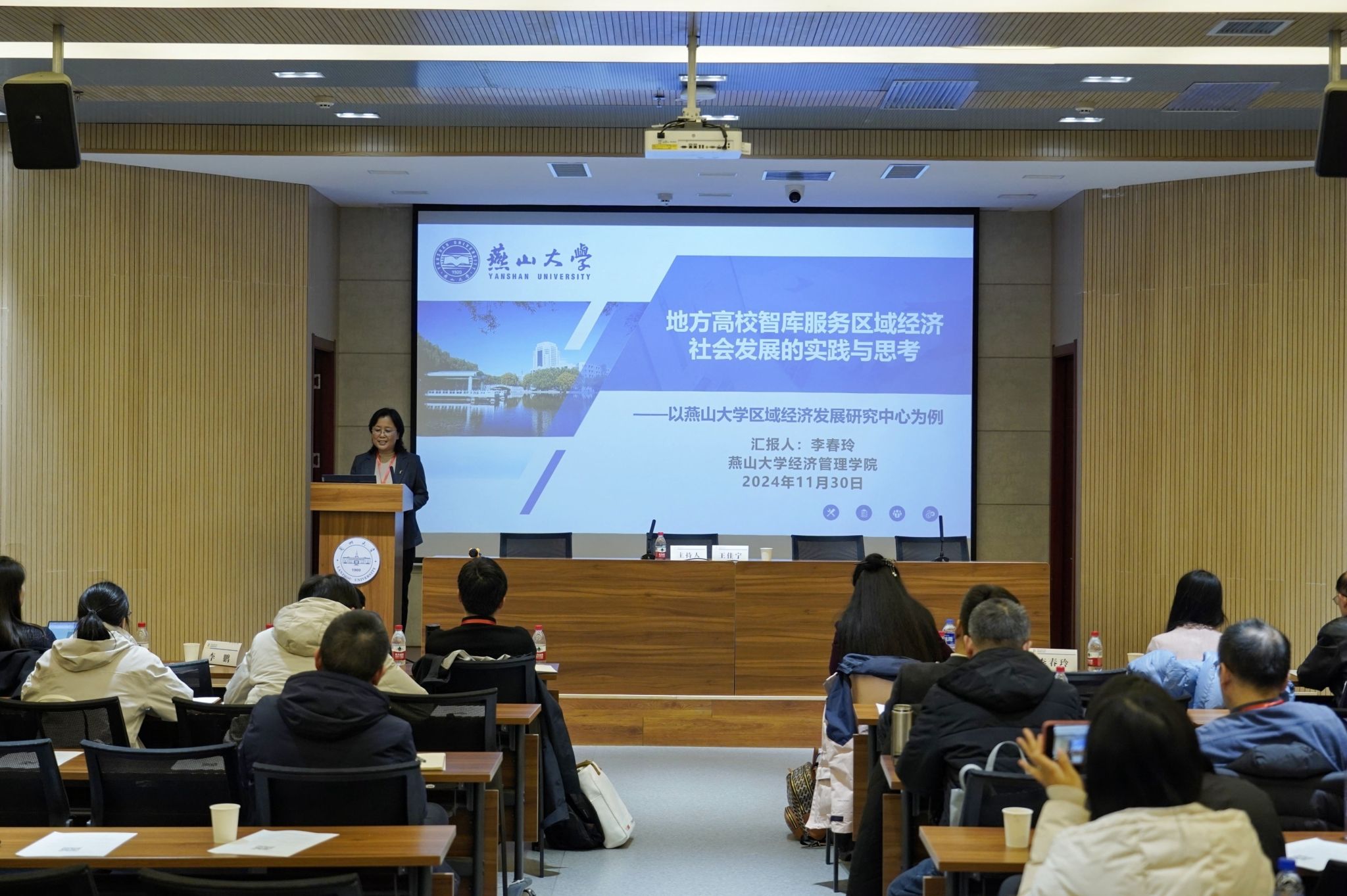 本届论坛上,六场专题分论坛同时召开。院长李春玲教授受邀出席了以“中国特色新型智库的新理念、新格局、新驱动:10年建设的回顾与前瞻”为主题的第二场分论坛,并以燕山大学区域经济发展研究中心为例,进行了题为《地方高校智库服务区域经济社会发展的实践与思考》的主题分享。全景呈现了地方高校智库从基础架构夯实、人才梯队培育到成果多点开花的发展全景图,生动诠释地方高校与区域经济社会互促共生紧密关系,为同类智库扎根地方、服务区域树立典范标杆。