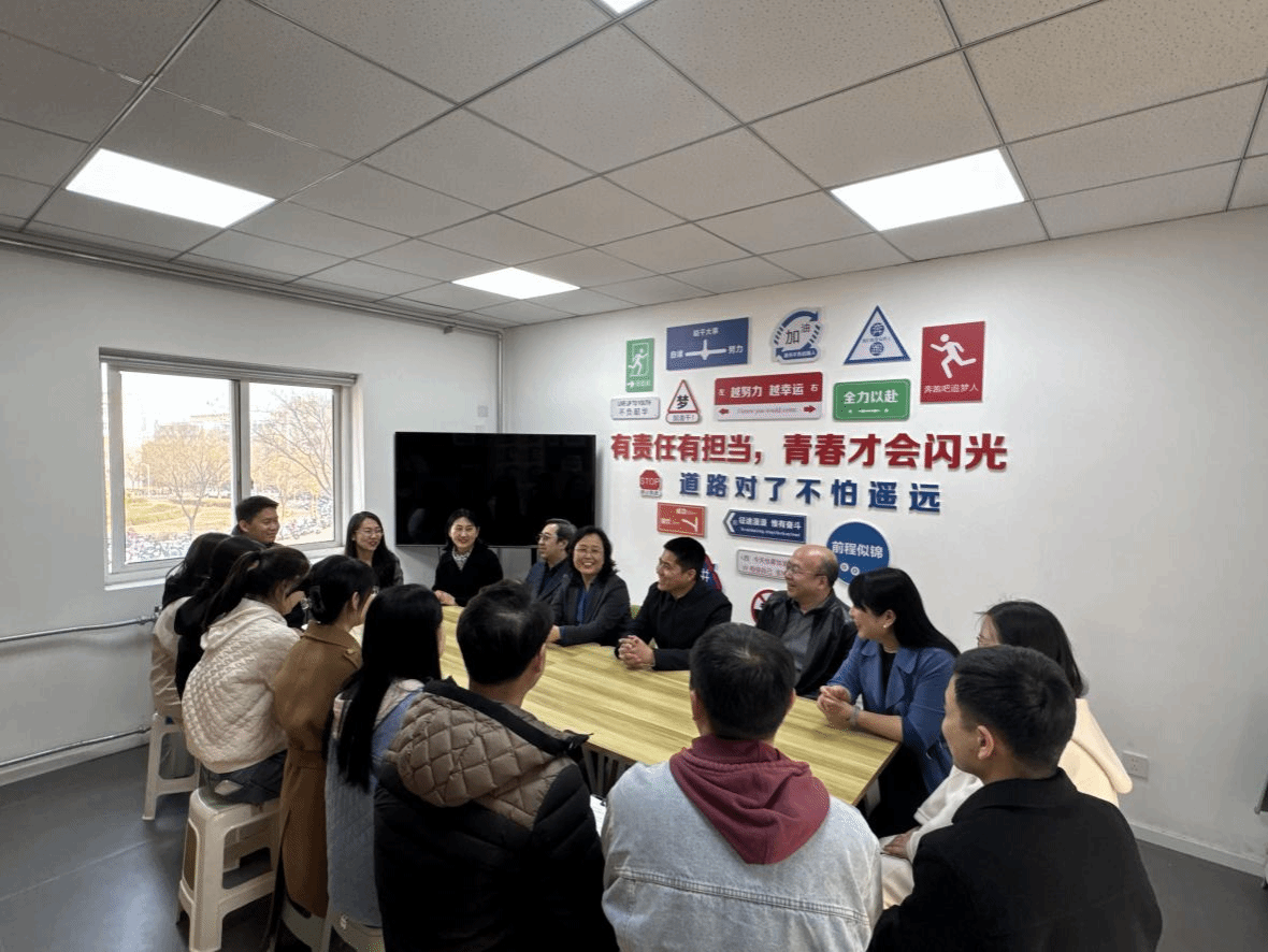 党委书记孙红磊,副院长陈晶璞、靖鲲鹏,正处级辅导员杨小丽,副处级辅导员张薇一行走进“寓见知心”一站式学生社区工作站走访调研,与全体辅导员进行座谈交流。