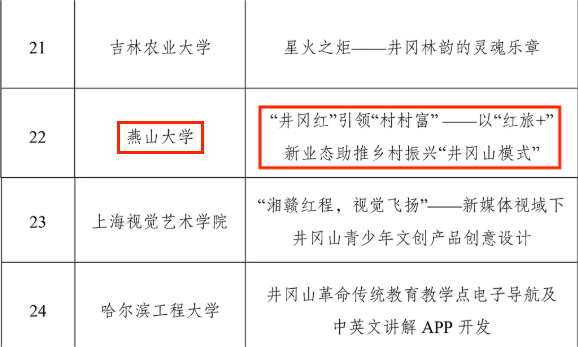 近日,由团中央青年发展部、全国青少年井冈山革命传统教育基地联合举办的2024年“井冈情•中国梦”全国大学生暑期社会实践季专项行动评选结果揭晓,燕山大学“燕腾红旅·村村共兴”团队在全国近400支团队中脱颖而出,荣获“优秀课题成果”荣誉称号。