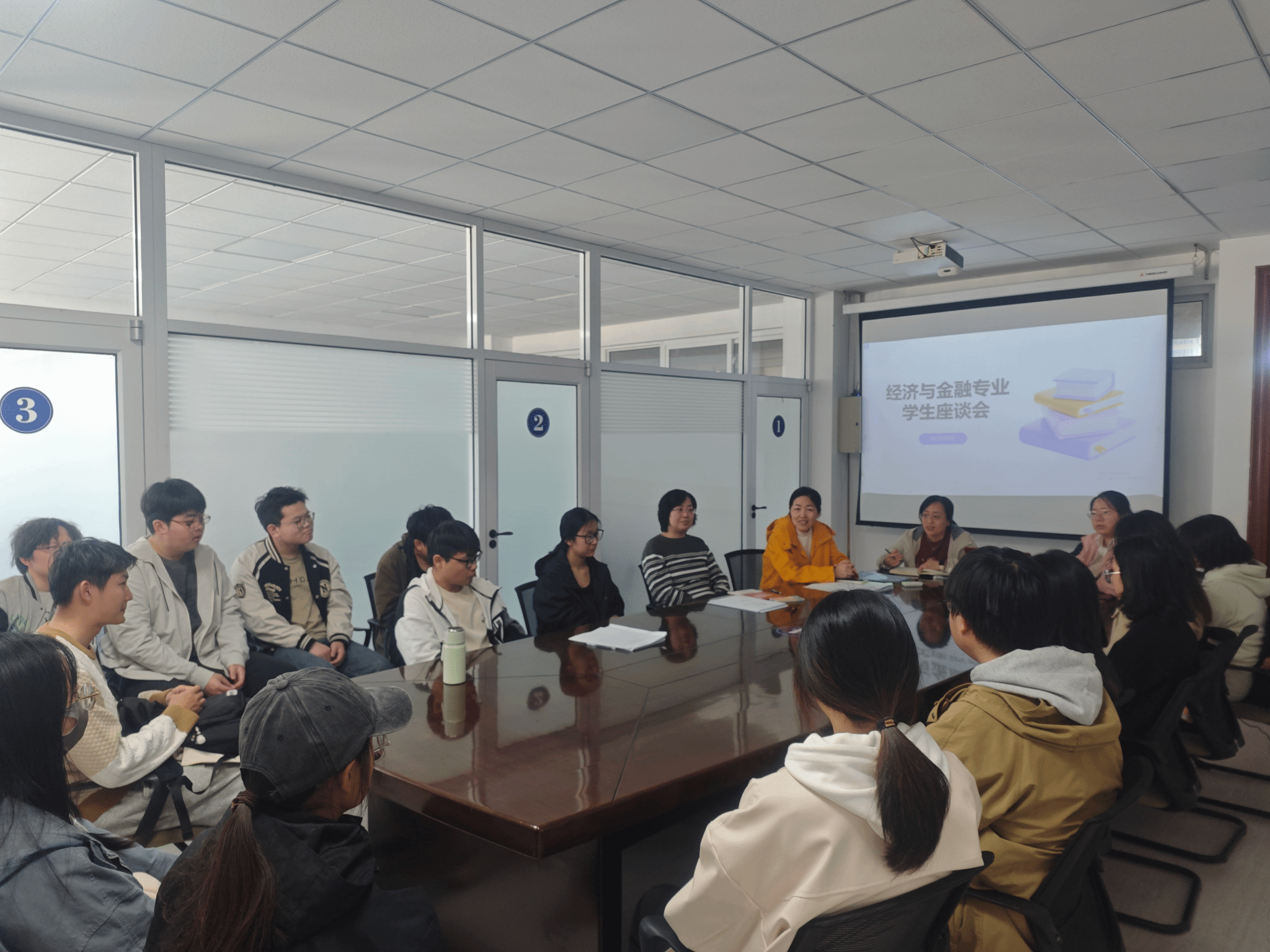 4月25日下午,经济系在西五A412召开师生座谈会,会议由经济系副主任胡月秀主持,系主任郑涛、党支部书记徐蕾、副主任刘伟岩及经济与金融专业各年级25名本科生代表齐聚一堂,围绕25版培养计划修订、课程质量提升、双创和劳动教育实践、就业考研指导、学生党员活动等议题展开深入交流,共收集意见建议40余条,现场回应问题15项,为下一步教学改革与学生服务工作提供重要参考。