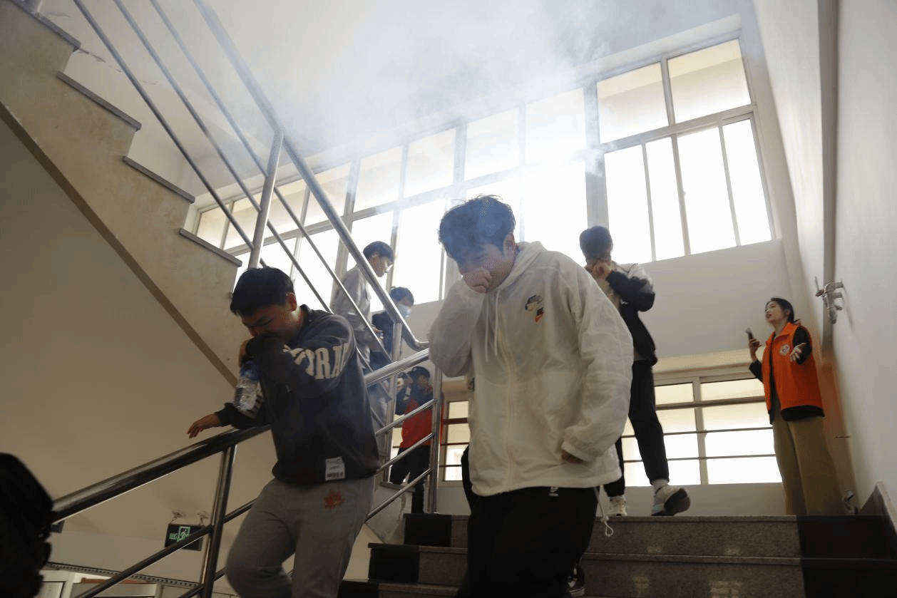 消防演练高度还原教学楼火场实景,设置烟雾逃生、伤员救护、灭火器实操等实战环节,秦皇岛市消防支队专家现场指导确保演练活动安全有序进行并取得实效。参演各部门高度重视,从演练内容、疏散路线、师生动员、物资保障、安全措施等多方面着手,精心策划,周密部署。