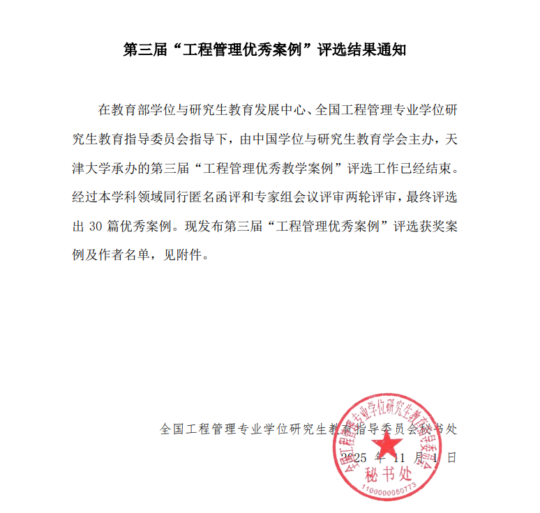 案例首次入选全国工程管理专业学位研究生教育指导委员会优秀教学案例,充分展现了永利app