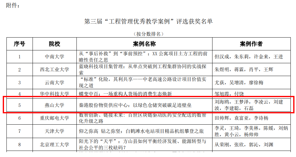 近日,第四届工程管理案例大赛决赛暨第三届“工程管理优秀教学案例”颁奖仪式在北京理工大学举行。由燕山大学MBA教育中心与秦港股份物资中心共同开发的原创教学案例《秦港股份物资供应中心:以绿色仓储突破碳足迹壁垒》,从全国一流高校及行业领军企业的众多优秀成果中脱颖而出,成为全国唯一入选的港口企业案例。这也是永利app