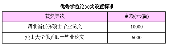 奖励对象为河北省或燕山大学优秀硕士学位论文作者,只计最高奖。本奖学金评审工作在河北省和燕山大学优秀硕士学位论文评选结果公布后进行。