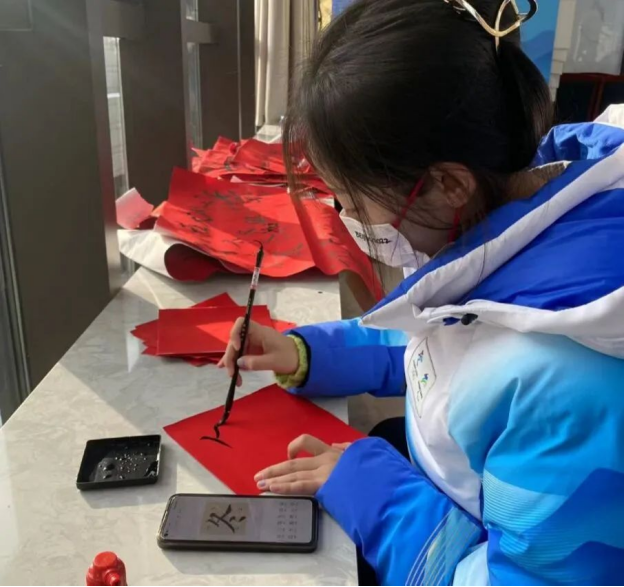 在冬奥会正式开幕之前,赵梓行参与了自己所在的检票验票领域的赛前筹备工作,撰写了检票验票领域服务话术,协助组内成员完成了对于突发情况的应急预案。在冬奥赛事志愿服务期间,除了完成所在岗位的本职工作外,她还负责检票验票领域物资发放管理。同时,她发挥自己的特长,春节期间,在场馆和驻地分别书写了迎冬奥对联。如今,冬奥赛事正在进行,她定会发挥好自己冬奥会志愿者的身份,助力2022年北京冬奥会圆满完成。