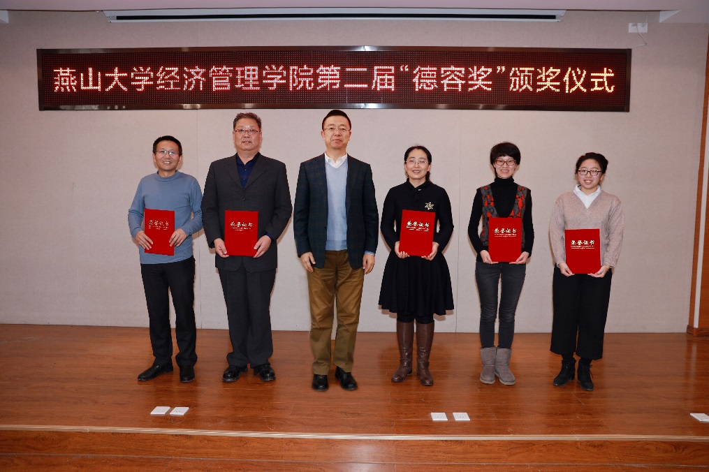 第二届“德容奖”颁奖仪式在经管楼学术报告厅举行。燕山大学党委常委、副校长任家东,校友办、校庆办主任张向前,永利皇宫app