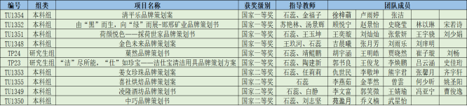 我校此次共推送16支队伍参加比赛,并最终有10支队伍成功晋级全国总决赛。经过大赛评审委员会评审,最终荣获国家一等奖6项、国家二等奖4项,石蕊老师在教师组的《品牌管理课程设计方案》中荣获全国一等奖,同时燕山大学荣获最佳院校组织奖,如表1,图1,图2所示。