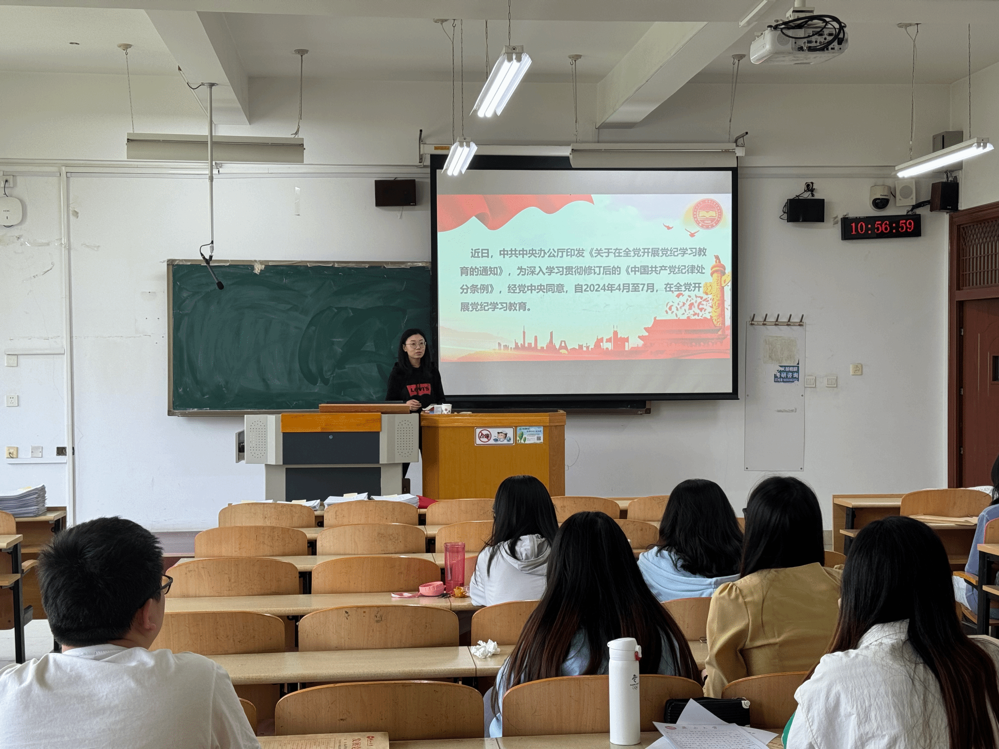 首先,根据中共中央办公厅印发的《关于在全党开展党纪学习教育的通知》,支部书记唱思迪带领支部党员学习修订后的《中国共产党纪律处分条例》,要求全体党员搞清楚党的纪律规矩是什么,弄明白能干什么、不能干什么,把遵规守纪刻印在心,内化为言行准则。