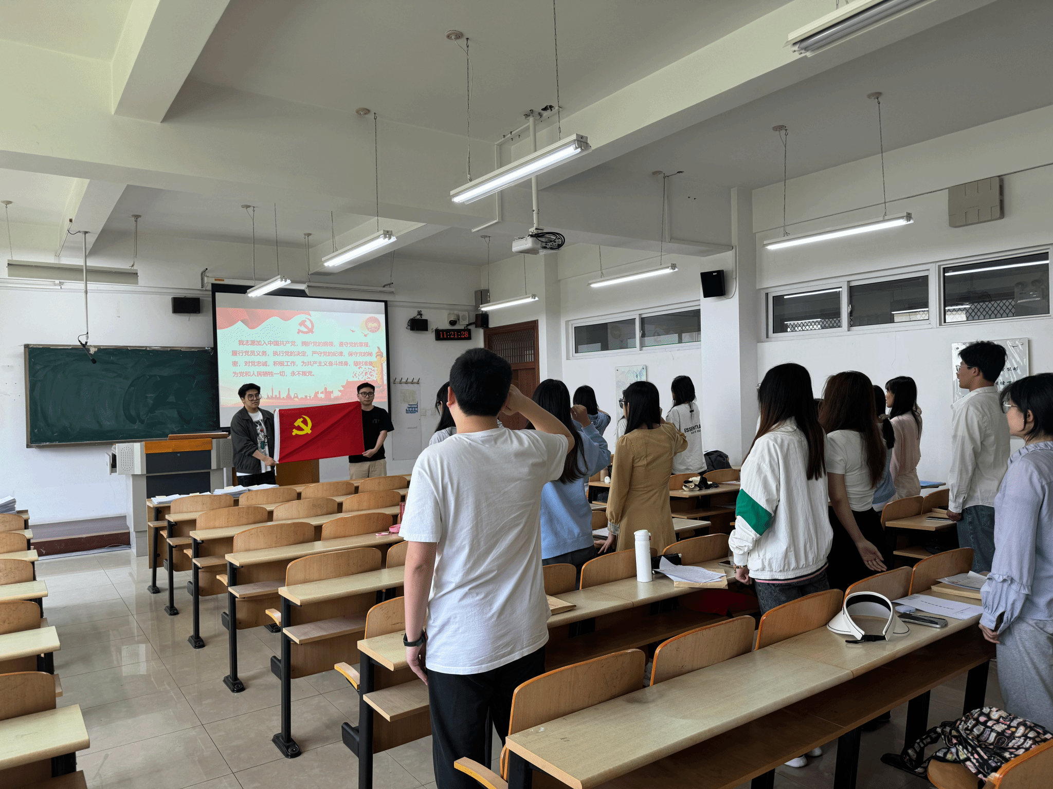 最后,由党支部书记唱思迪带领刚刚转正的党员同志们重温入党誓词,在一声声誓言中铸牢初心和使命。