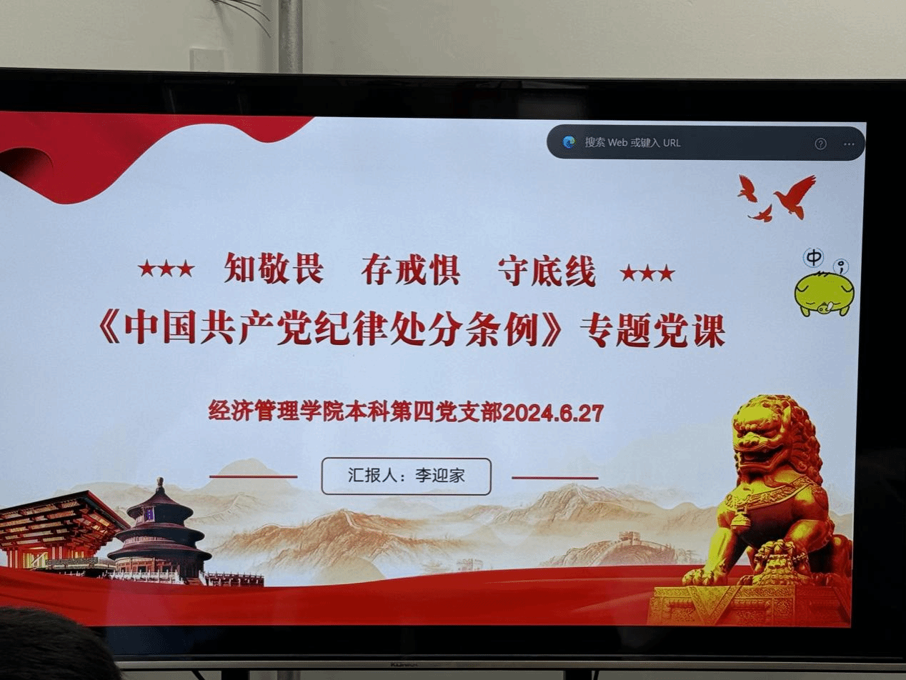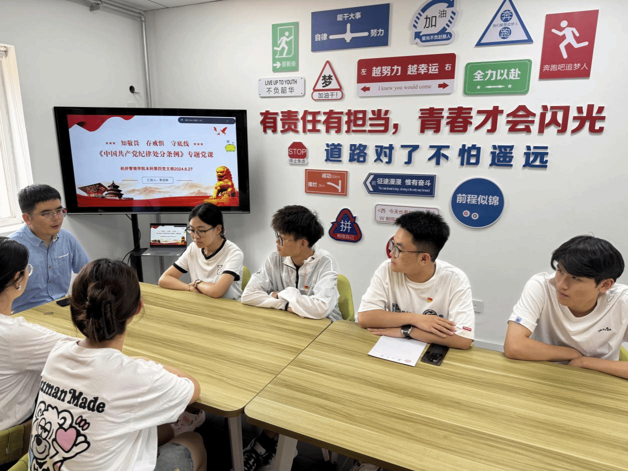 本科生第四党支部在西校区“寓”见知心大学生一站式社区开展学习《中国共产党纪律处分条例》专题党课活动,党支部书记李迎家主讲,支部全体党员参加。