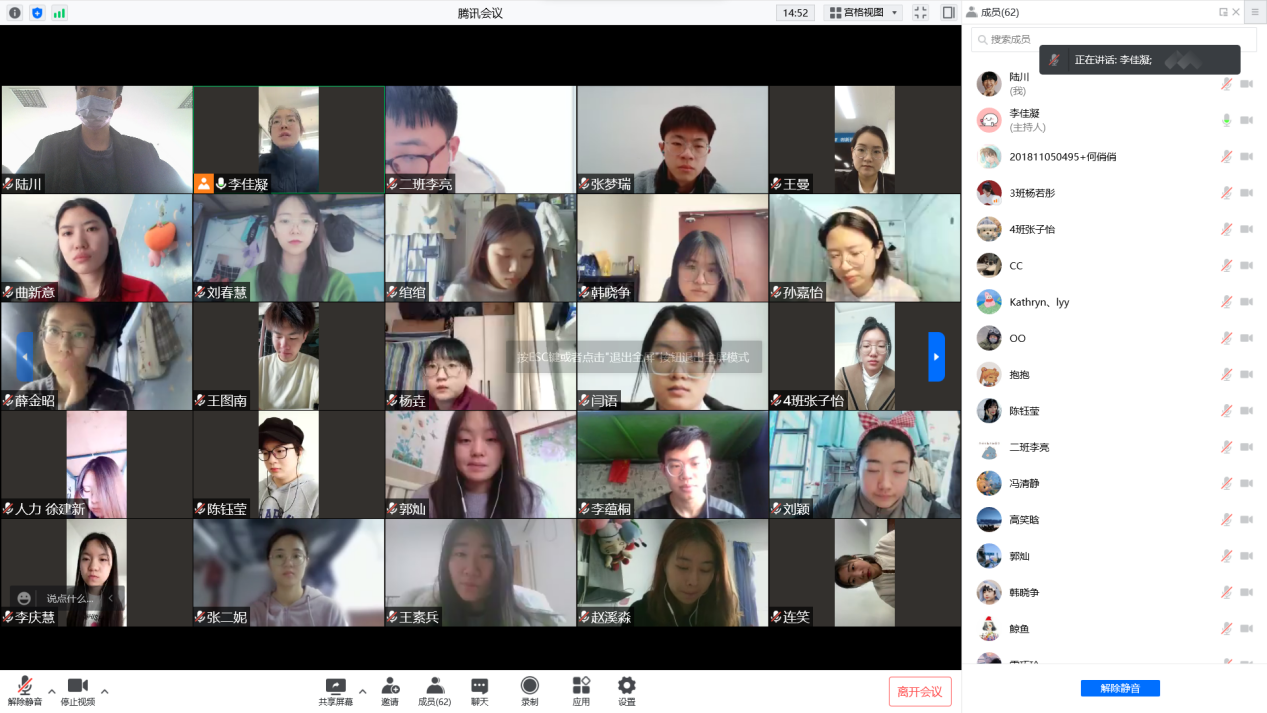 本科生第三党支部在线上召开“学习贯彻习近平总书记重要讲话和全国两会精神”组织生活会和民主评议党员,会议由李佳凝书记主持,党支部全体党员参加。