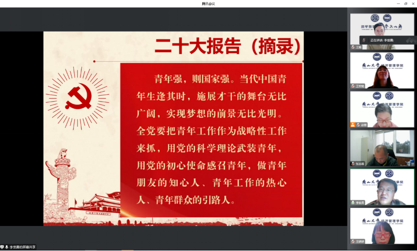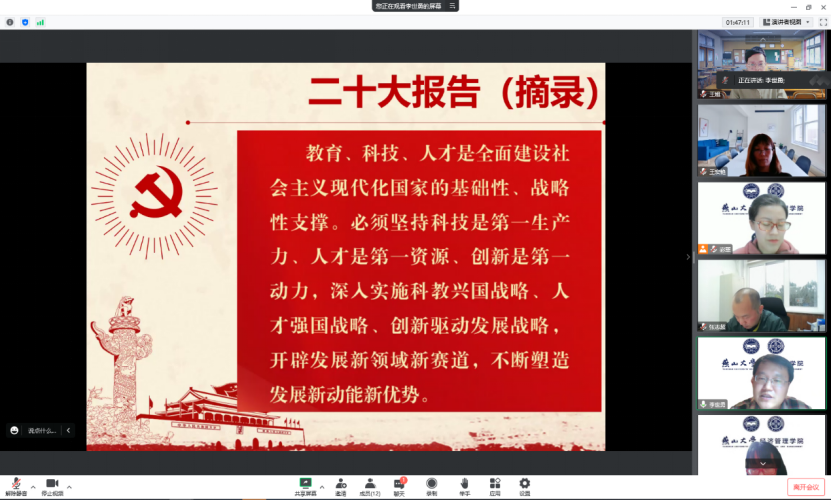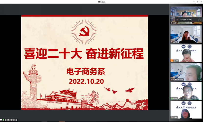 10月20日下午,电子商务系党支部以线上会议方式深入学习了党的二十大报告,支部书记李世勇主持了学习活动,电子商务系全体教师参加了学习活动,永利皇宫app