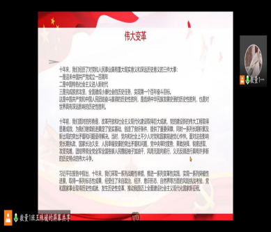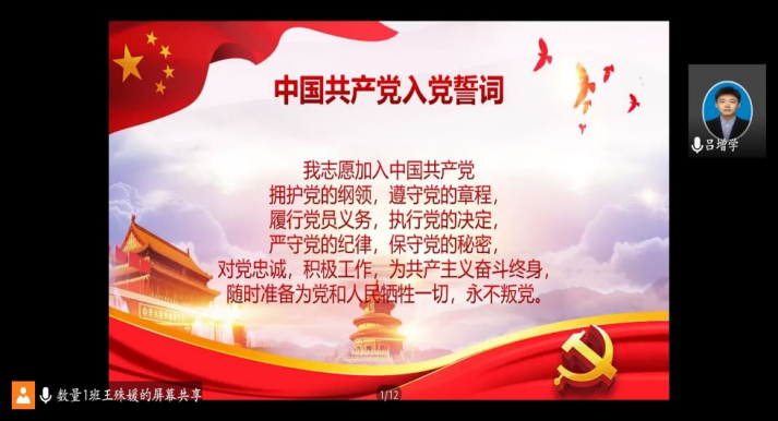 本科生第一党支部开展了以“学思践悟二十大,砥砺奋进新征程”为主题的线上党日活动。党支部书记李宁老师、支部党员和入党积极分子参与了本次活动,此次活动由王殊媛、贾倩妮主持。