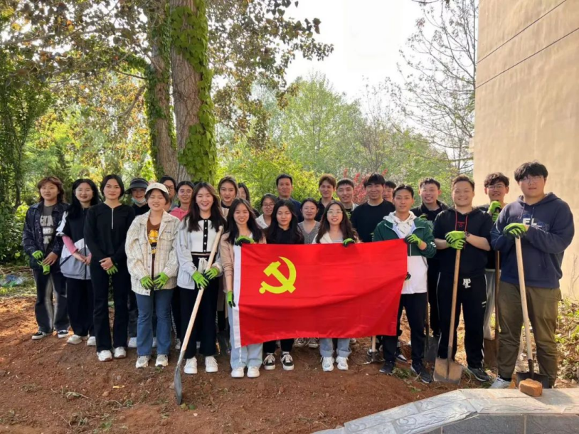 周边环境。虽然杂草茂密,土质坚实,给本次劳动活动带来了一定的困难,但支部成员们不怕苦,不怕累,面对校园草坪中肆意生长的野草、石块等,同学们蹲下身子弯下腰,拔的拔、铲的铲、捡的捡、搬的搬,互帮互助,齐心协力,轮流替换,最终经过两个多小时的清除杂草,翻新土地,洒下花种,原本长满杂草的花圃焕然一新。党员们劳动忙碌的身影为校园增添了一道靓丽的风景线。我们将共同期待洒下的花种开满花园的那一刻,校园一角呈现出一派高低错落有致的景色。