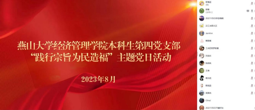 8月12日晚,永利皇宫app 本科生第四党支部通过腾讯会议线上召开了“践行宗旨为民造福”主题党日活动。
