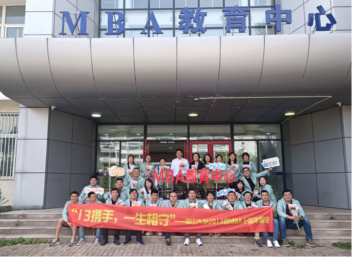 2013级MBA秋季班的同学们,迎来了入学的第十个年头, 为纪念一起走过的日子,9月23日,他们穿着统一印着“13携手,一生相守”的夹克衫,组织了“重返燕园”的纪念活动。